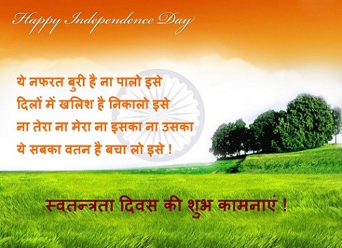 Shayari on 15 August in Hindi is a very easy way to share your ideas and emotions with others. Independence Day shayari in Hindi 2018 are quite funny as well as romantic so that they can be used anywhere messages and chat. Funny shero shayari are very appreciated and loved by everyone because this bring smile on their faces this is the reason that we all love to hear and share shero shayari among ourselves. Independence Day romantic shayari bring gloominess and enlighten our mood. Here on this post you will get every kind of Independence Day shayari in Hindi language that you will love to read, use them in your messages and and chat on this great day of independence.